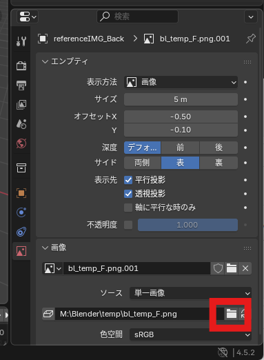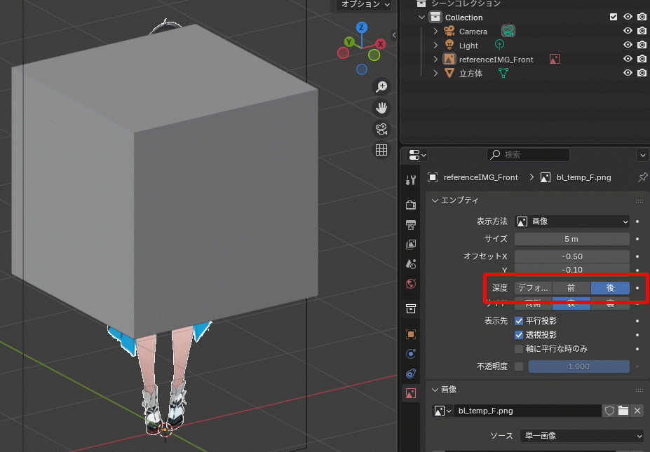 深度(Depth)でオブジェクトとリファレンス画像の位置関係を変更します。