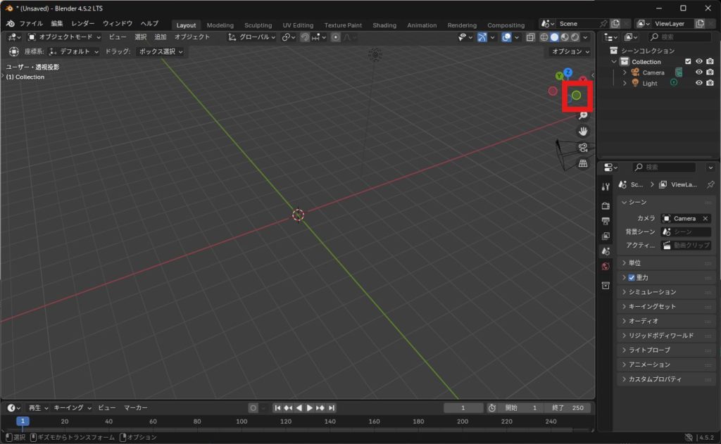 - Blender標準:テンキー1