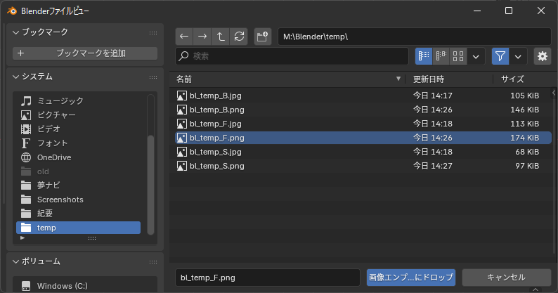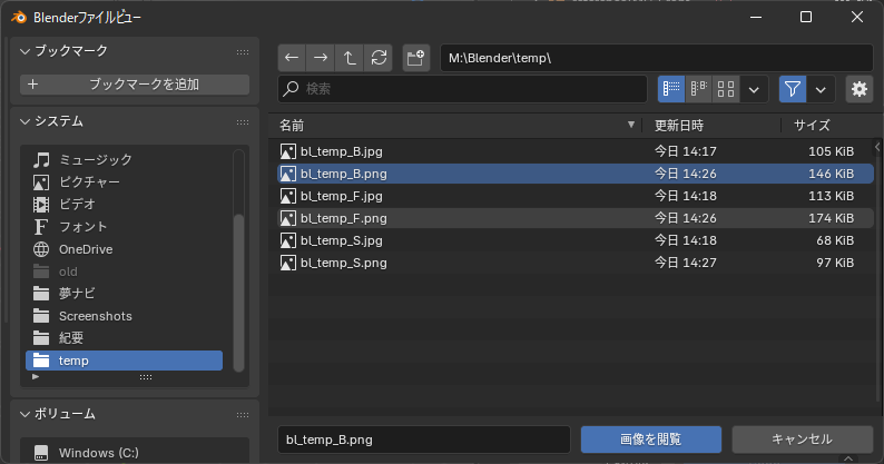 ファイルブラウザが開くので、正面図の画像を選択します。