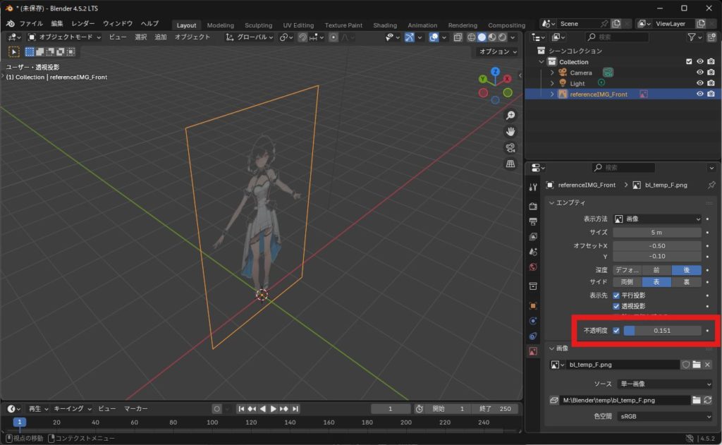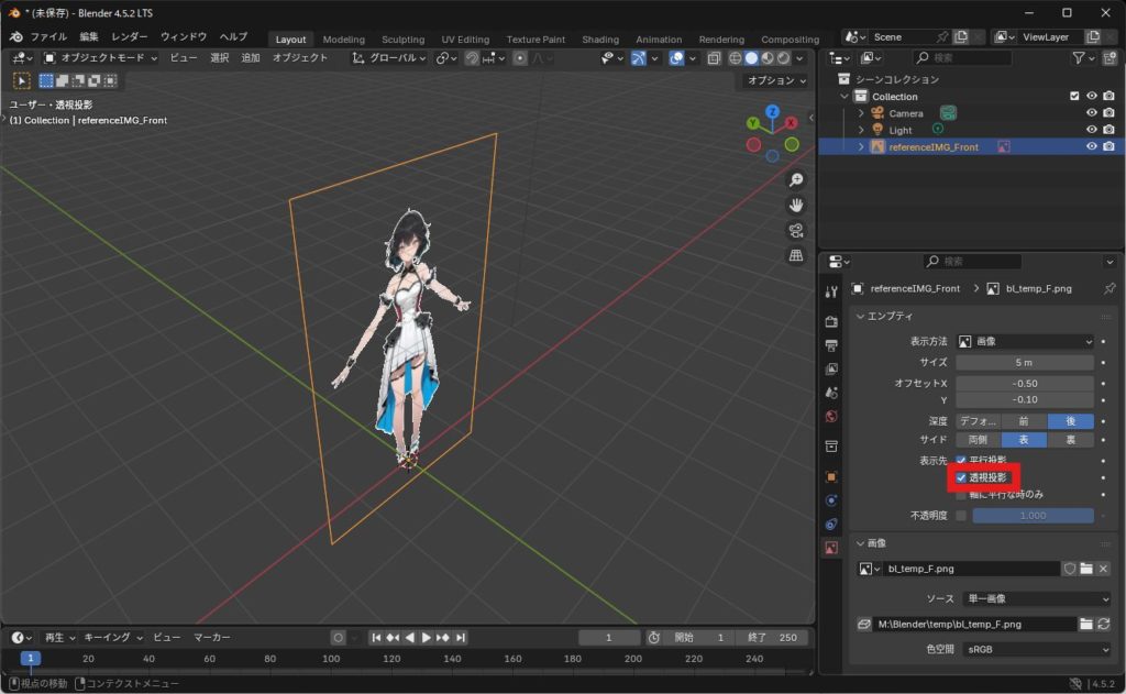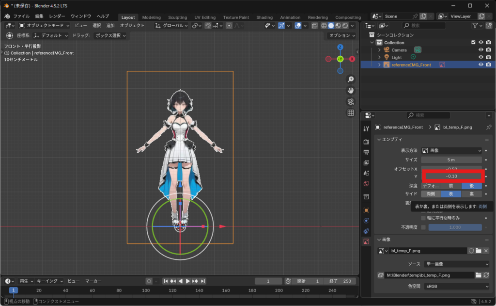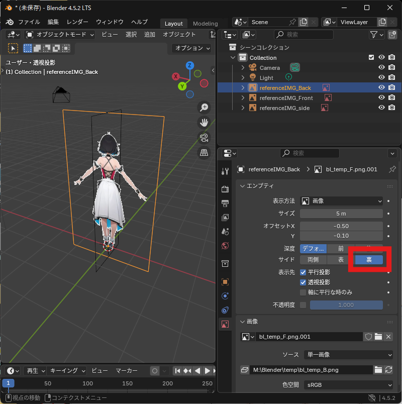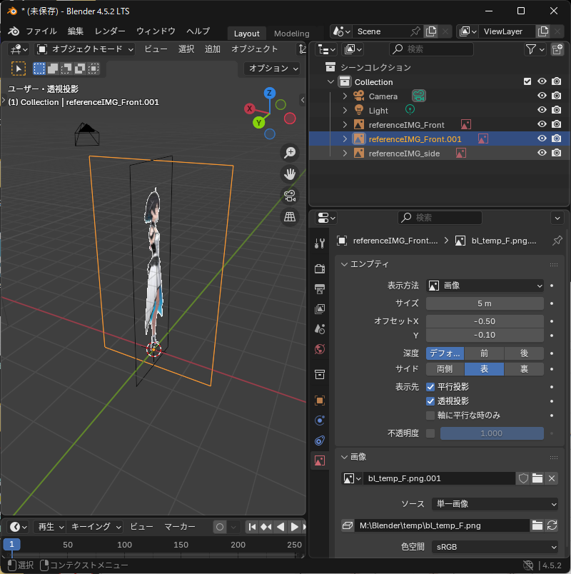 リファレンス画像を追加する(正面)
