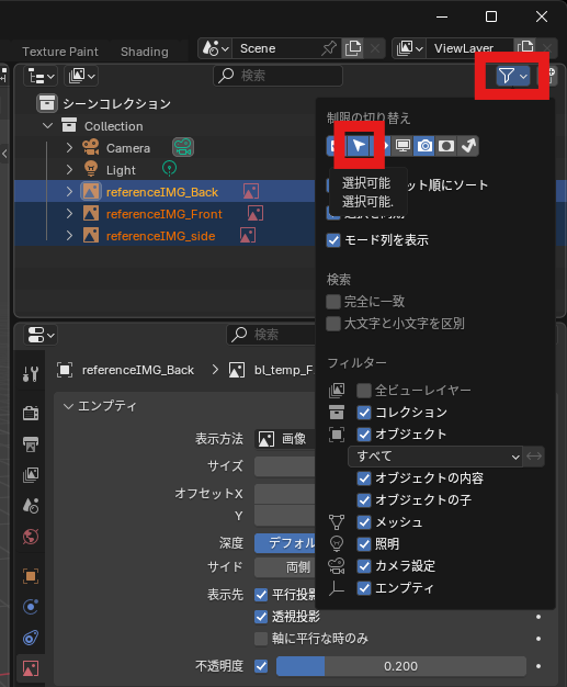 オブジェクト(リファレンス画像)を選択できないようにする