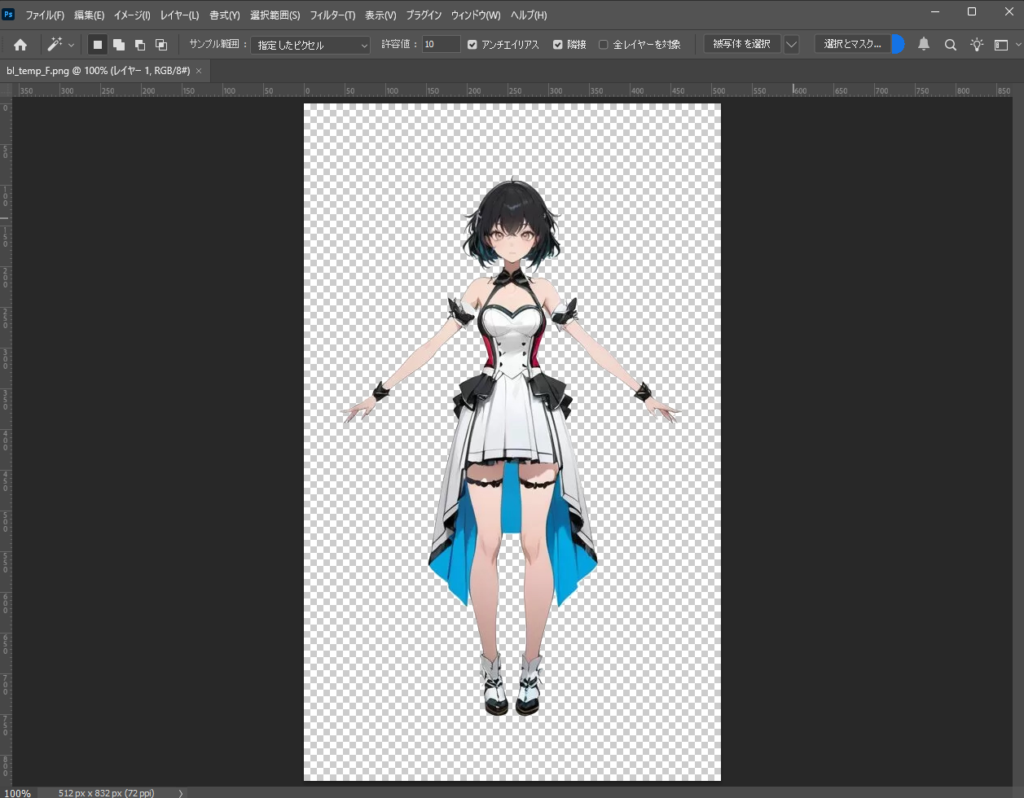Blenderのリファレンス画像はアルファチャンネルに対応しているので、予め背景を消去し、PNG形式で保存します。