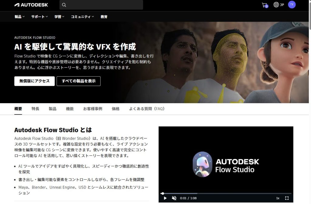Flow Studio(旧:Wonder Dynamics) は Autodesk が提供するクラウドベースの AI ボディトラッキングツールです。