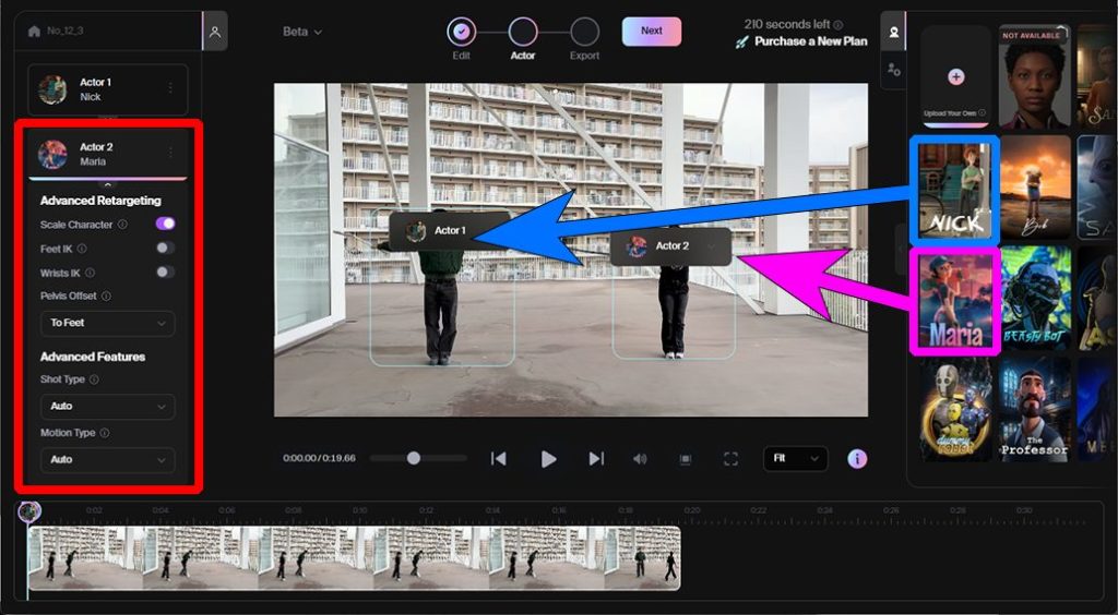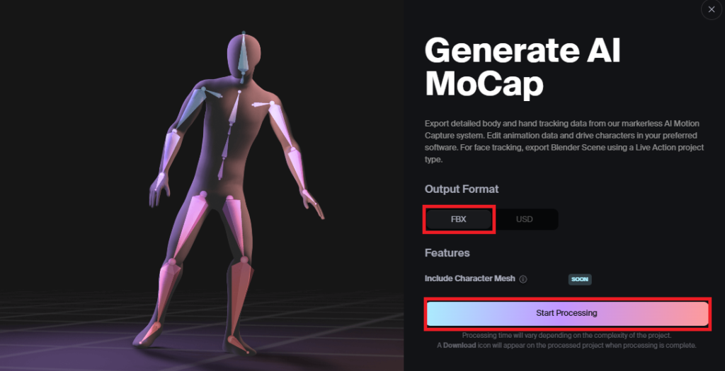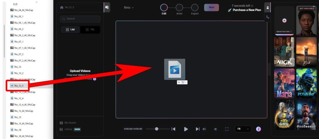 複数カットを扱いたい場合は、AdobePremiere などの動画編集ソフトであらかじめ一つの動画にまとめる必要があります。 - 無料プランではキャプチャーできるキャラクターは1体のみです。キャラクター2体以上のキャプチャーは有料プランで可能です(4体まで)。