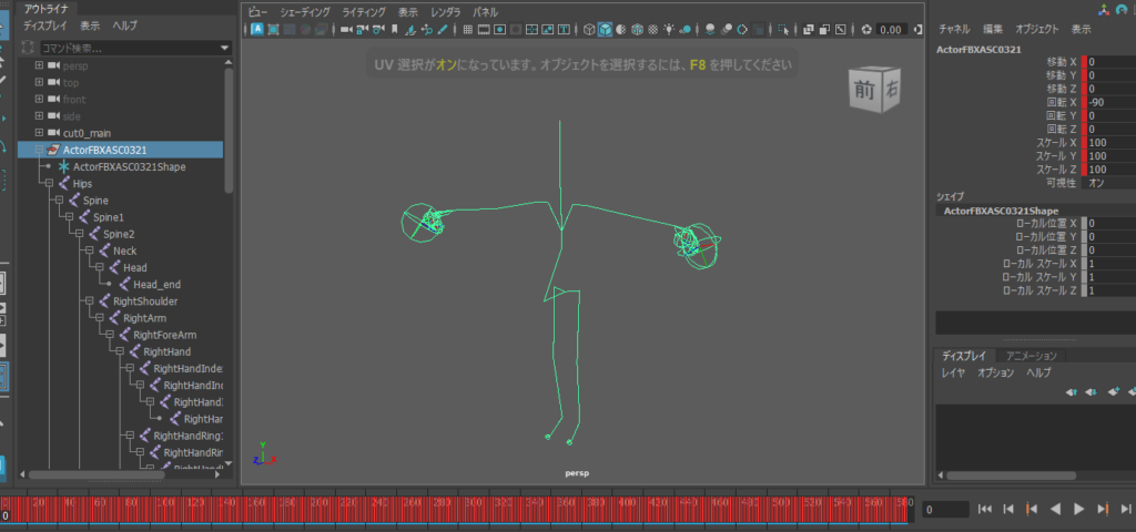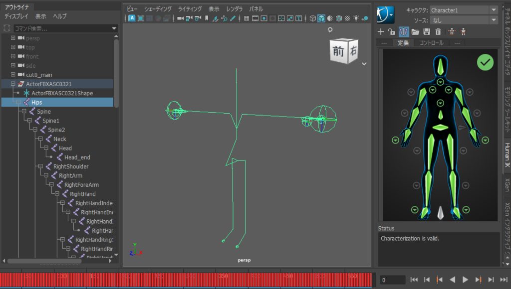 今後バージョンアップによる修正が考えられますが、HumanIKへの登録には支障がない為、一旦はこの状態をデフォルトとして作業を行います。