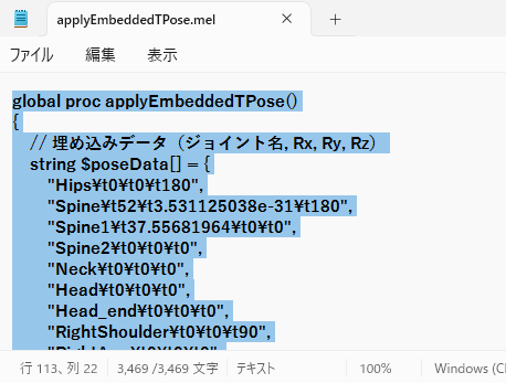 Flow Studio のキャラクターのボーンをTポーズ化するMELスクリプト