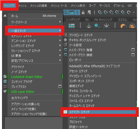 ウィンドウ>一般エディタ>スクリプトエディタ
