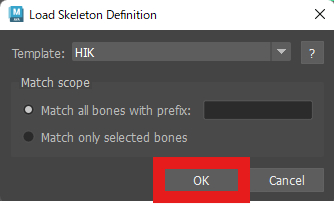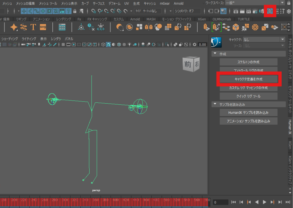 そこで Autodesk Maya のHuman IK (HIK) を使って、任意のリグへリターゲットします。