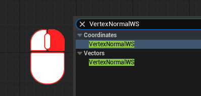 マテリアルグラフ上でTabキーを押すか右クリックしてVertexNormalWSと入力します。